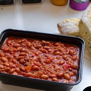 Chili con carne with bread
